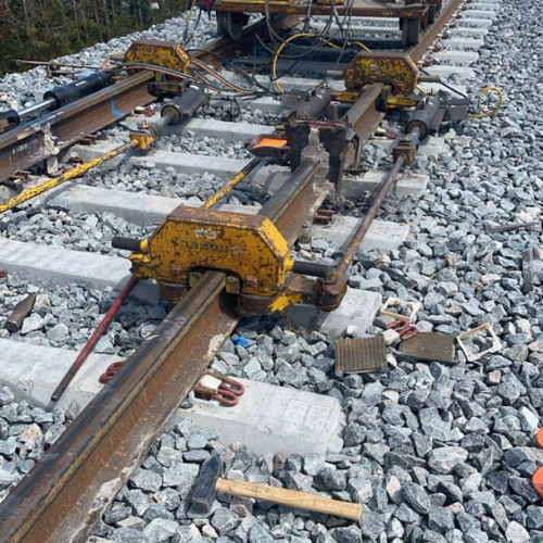 MM Entreprise ApS har stået for renovering og modernisering af en eksisterende jernbanestrækning, hvor opgaven omfattede både udskiftning af slidte skinner og forstærkning af underbygningen.